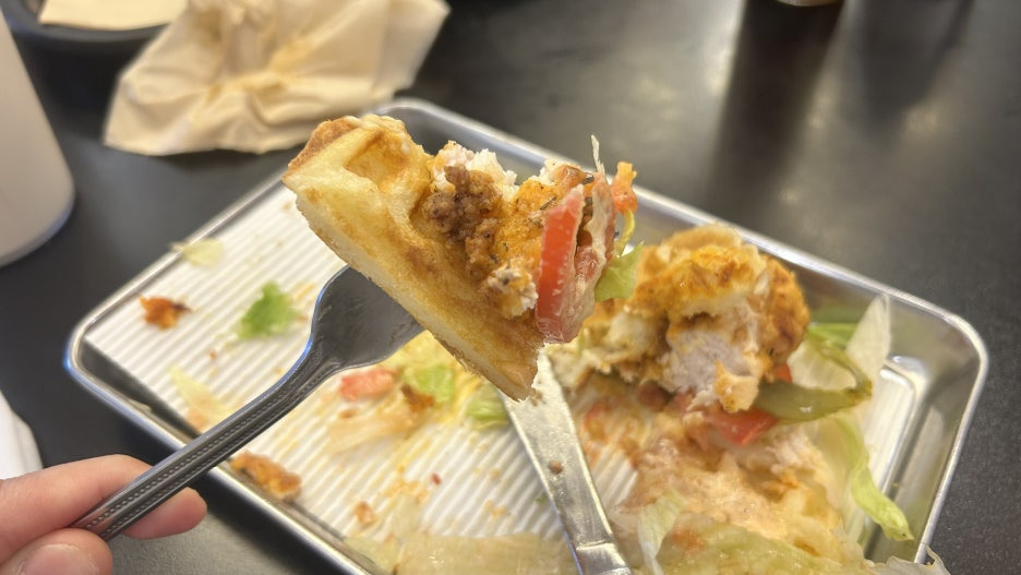 폭신한 와플하고 샌드위치재료를 같이 먹는 느낌이예요.